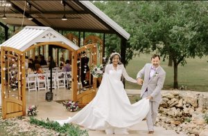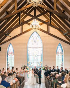 For ceremonies, the open-air chapel offers seating for 150 to 175 guests with stained glass details and panoramic views of the Hill Country. Cocktail hour and rehearsal dinners can be hosted in the open-air pavilion, giving guests a chance to mingle while taking in the ranch’s natural beauty.